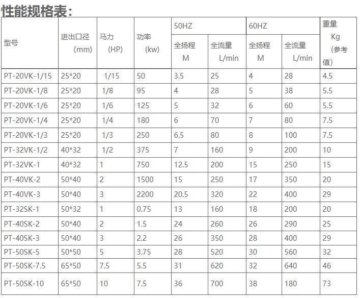 2.出入口徑:40-1-1/2”50-2" 65-2-1" 80-3"